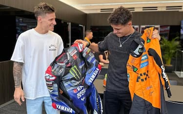 F1, GP Spagna: Quartararo-Norris, risate e scambio tute a Barcellona. Le FOTO