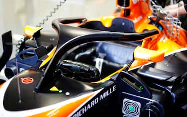 Il sistema Halo si basa su due grandi montanti che partono dalla parte posteriore dell'abitacolo (sulle spalle del pilota) e si uniscono sul fronte, appena sopra il campo di visione.