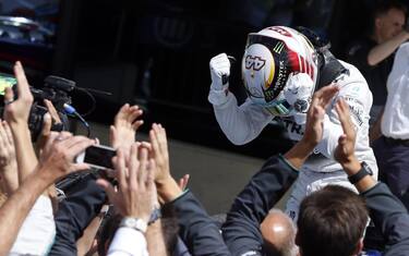- Al 29° giro il colpo di scena: la Mercedes di Rosberg accusa un problema al cambio costringendolo al ritiro, con Hamilton così il comando della gara. Una volta in testa, Sir Lewis domina senza rivali, tenendo Bottas a distanza e gestendo gomme e ritmo. E ancora una volta il pubblico gioisce, celebrando così la sua prima vittoria in casa dall'inizio dell'avventura con la Mercedes.