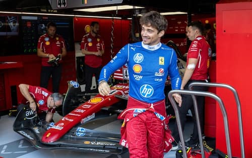 - Il pilota monegasco arriva nel paddock con il suo cagnolino Leo, ormai diventata la mascotte Ferrari!