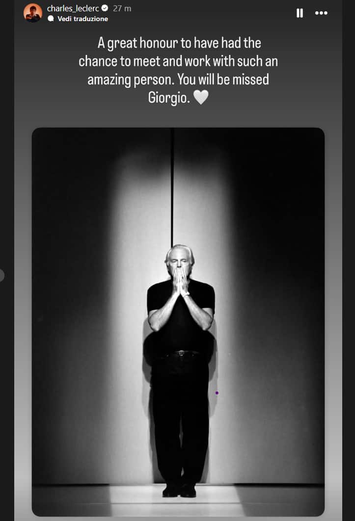 Leclerc (Ferrari) ricorda Armani: "Persona incredibile, un onore averti conosciuto"