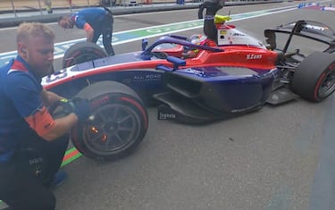 - La F2 ha inaugurato il venerdì del Gran Premio d'Azerbaijan scendendo in pista per l'unica sessione di prove in programma. Tante le insidie, specialmente in frenata, con Alexander Dunne capace di imporsi con il tempo di 1:55.720, finendo poi la sessione nella via di fuga di curva tre a causa di un lungo. Nella foto il 'bacio' al muro di Victor Martins.