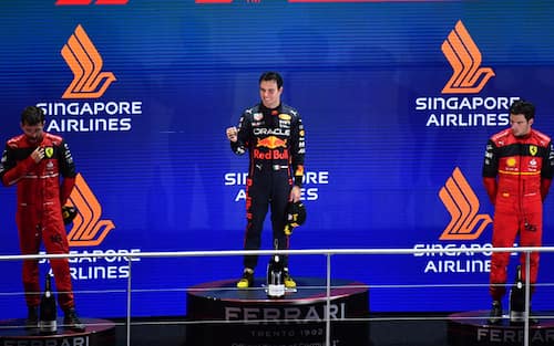 - Il poleman Charles Leclerc viene passato al via da Sergio Perez, che conquista la vittoria a Marina Bay con la su Red Bull