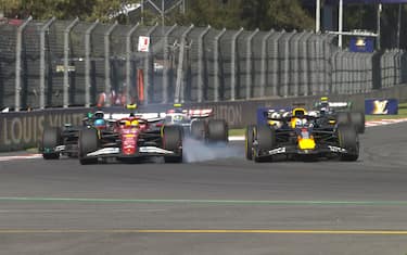 Duello in stile 2021 tra Lewis Hamilton e Max Verstappen nel caotico GP del Messico. Al 6° giro l'olandese va all'attacco del britannico, che si difende come un leone. Nella battaglia finiscono entrambi nell'erba, ma l'unica penalità arriva al pilota della Ferrari che sconta 10'' per aver tratto vantaggio tagliando una chicane. Guarda la fotosequenza. Il GP del Messico è LIVE su Sky e in streaming su NOW