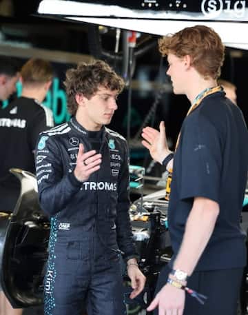 - "È fantastico vedere il controllo che hanno della macchina e che tipo di velocità riescono a raggiungere", ha detto Sinner dopo l'hot lap fatto con Antonelli.