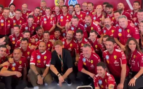 - Ed è tempo della foto con tutti gli uomini della Scuderia di Maranello. Momento in cui arriva Hamilton, che saluta Sinner con una stretta di mano prima di posizionarsi per lo scatto di gruppo.