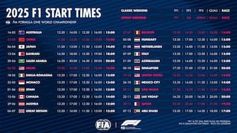 - Qui il riepilogo di tutti i Gran Premi e gli orari gara dopo gara (l'orario mostrato in grafica è quello locale del luogo in cui si svolge il GP)