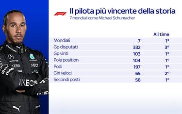 Il pilota britannico è alla sua ultima stagione con la Mercedes: dal 2025 passerà alla Ferrari. Quella di Lewis con il team di Brackley è una lunga storia di trionfi e record. Qui i suoi titoli Mondiali (compreso quello vinto nel 2008 con la McLaren) del pilota più vincente della storia. Il campionato ripartirà nel weekend del 2 marzo in Bahrain: tutto live su Sky e streaming su NOW