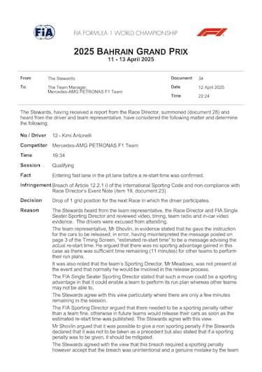 - Nel penultimo appuntamento della stagione, in Qatar, Antonelli chiude al sesto posto nella Sprint Race. A influire è una penalità di 5'' che il pilota Mercedes riceve al termine della mini-gara del sabato. Poi le qualifiche, in cui Kimi si piazza proprio dietro al suo compagno di squadra Russell: partirà 5°.