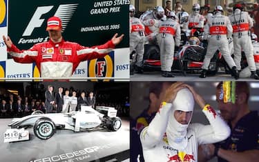 BRAWN/MERCEDES. Nel 2009 la Brawn domina e, nonostante un recupero della Red Bull nella seconda parte del Mondiale, vince il titolo piloti e costruttori (8 vittorie e 15 podi). Ross Brawn vende il team alla Mercedes, che l'anno successivo non vince mai ed ottiene solo 3 podi.
