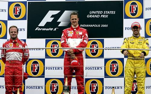 MICHAEL SCHUMACHER/FERRARI. Nel 2004 il tedesco domina con 13 vittorie e 15 podi su 18 GP; la FIA cambia le regole per il 2005, la Bridgestone "sbaglia" le gomme e ottiene solo 5 podi e una "vittoria-farsa" a Indy in cui i gommati Michelin non corrono.