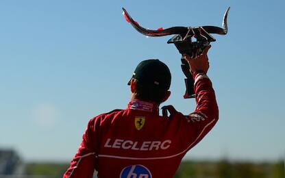 Leclerc fa 150 GP con Ferrari: il casco speciale
