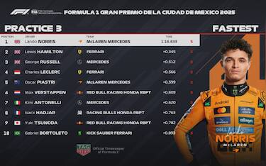 Prime libere a Norris. Verstappen 2°, Leclerc 3°