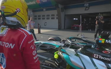 Hamilton, occhi sulla Mercedes: studia la W17 da vicino