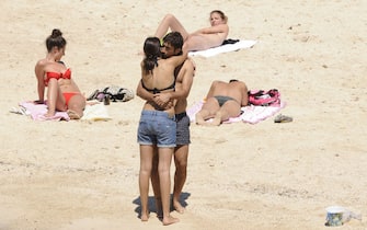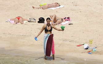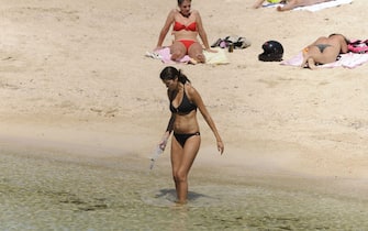 Per Mamen Sanz non è facile superare la concorrenza dei topless, ma lei va dritta verso il mare