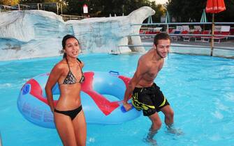 Felice e beato come un bimbo, Rossi sguazza alla'Aquafan di Riccione con la fidanzata Marwa Klebi