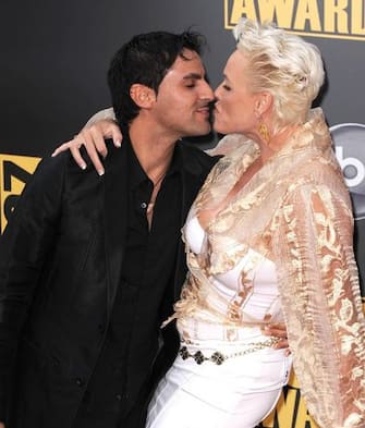 La statuaria bionda, ex moglie di Silvester Stallone, nel 2006 si è sposata per la quarta volta con un barista sardo di Iglesias, Mattia Dessi, 15 anni più giovane di lei -