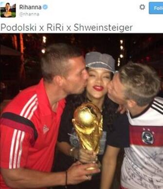 LA FOTOGALLERY. Grande sintonia tra la cantante e O Rei, che si sono conosciuti in occasione di Germania-Argentina. Un sogno che si è avverato per la popstar, letteralmente impazzita dopo la vittoria dei tedeschi. "Ho toccato la Coppa!"