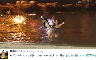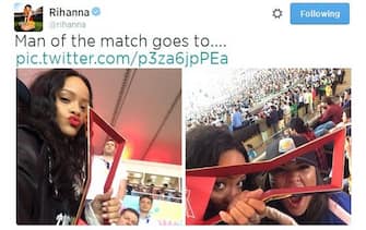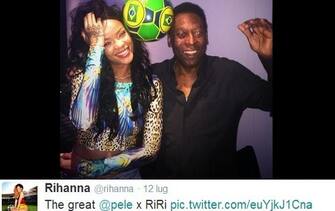 Che coppia! Rihanna e Pelé giocano con un pallone aspettando la finale... (foto da Twitter) -