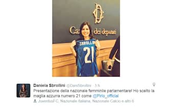 DANIELA SBROLLINI. Deputata del Partito Democratico, di origine brindisina ma residente a Vicenza da tanti anni. Ha scelto la 21 di Andrea Pirlo: ambiziosa! (foto da Twitter) -
