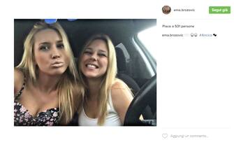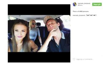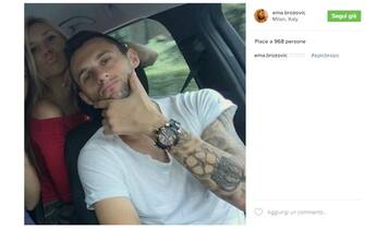 Con un'amica in auto, fondamentale per il selfie "alla Brozovic" (foto da Instagram) -