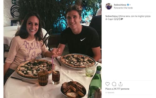 Federico Chiesa torna al gol dopo 3 mesi esatti (non segnava dal 22 settembre, alla Spal) regalando alla Fiorentina una vittoria importantissima a San Siro con il Milan e una grande gioia alla bella fidanzata Caterina, ingegnere civile, la prima tifosa dell'attaccante viola (foto da Instagram)