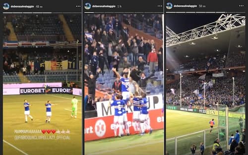 Debora era a Marassi e ha "documentato" con delle stories le due reti di Quagliarella che lo consegnano alla storia della A e contribuiscono alla vittoria per 4-0 dei blucerchiati sull'Udinese (foto da Instagram)