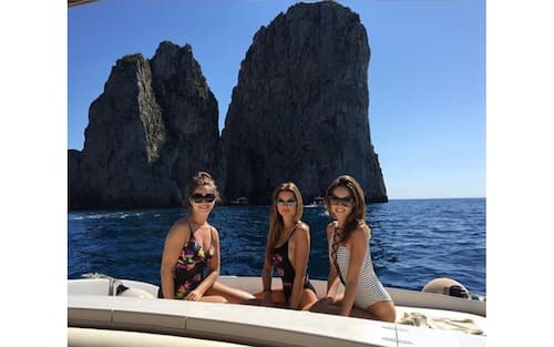 Laura e le amiche "posano" con i Faraglioni, a Capri (foto da Instagram)