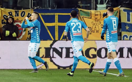 La dedica del 24enne vista da un'altra angolazione. Poi è arrivata la doppietta del connazionale Milik e il poker finale di Ounas