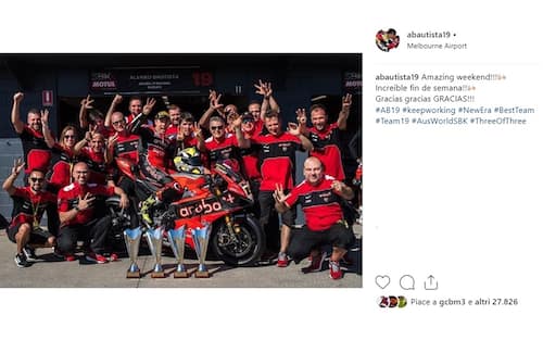 Alvaro Bautista è stato fenomenale nel primo appuntamento stagionale della Superbike, a Phillip Island, assoluto dominatore in Gara 1, nella nuova gara Sprint per la pole e anche in Gara 2. Una "tripletta" condivisa con tutto il team Ducati e naturalmente con la bellissima moglie Grace Barroso (foto da Instagram)