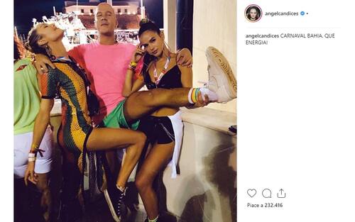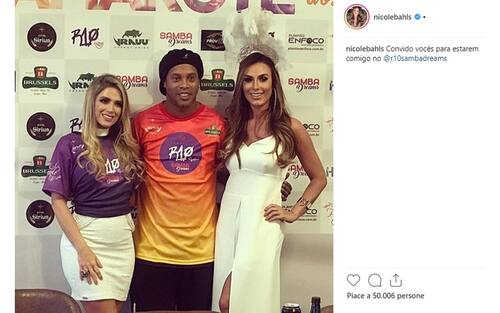 Dinho alla presentazione del "suo" Carnevale, insieme a Nadja Pessoa e Nicole Bahls, molto note in Brasile (foto da Instagram)