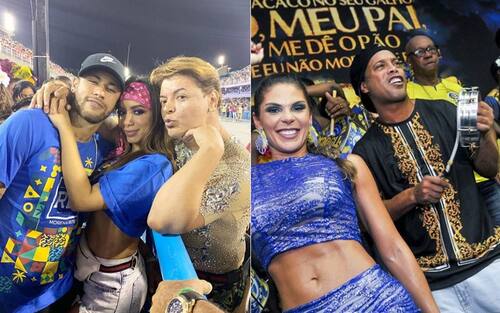 Neymar e Ronaldinho, ma anche Ronaldo (il Fenomeno) e Adriano, l'Imperatore. Tutti scatenati nel Sambodromo di Rio De Janeiro, dove è in corso il coloratissimo Carnevale brasiliano. Con loro tantissime bellezze: O Ney in "coppia" con la cantante Anitta, ma c'è anche la sua ex Bruna Marquezine. E ancora Izabel Goulart e altre supermodelle e splendide ballerine