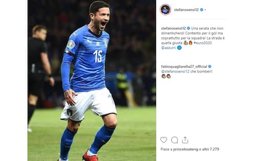 "Una serata che non dimenticherò" ha scritto Stefano sul suo profilo Instagram, raccogliendo anche le congratulazioni di Fabio Quagliarella, autore di una doppietta nel 6-0 dell'Italia al Tardini (foto da Instagram)