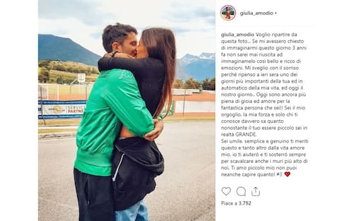 E poi le dolcissime parole per la fidanzata Giulia, 3 anni insieme (foto da Instagram)