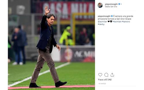 L'avventura di Inzaghi sulla panchina del Bologna si è conclusa il 28 gennaio del 2019, sostituito da Sinisa Mihajlovic (foto da Instagram)