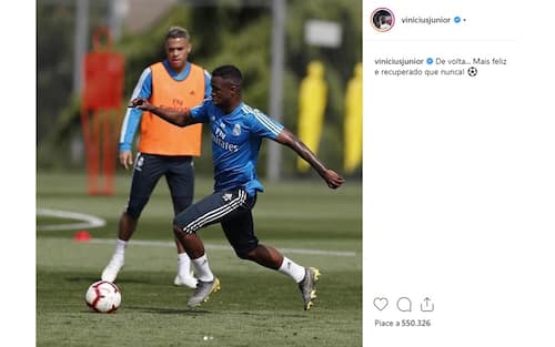 Vinicius, 19 anni il prossimo 12 luglio, è sbarcato a Madrid la scorsa estate, acquistato dal Flamengo (foto da Instagram)