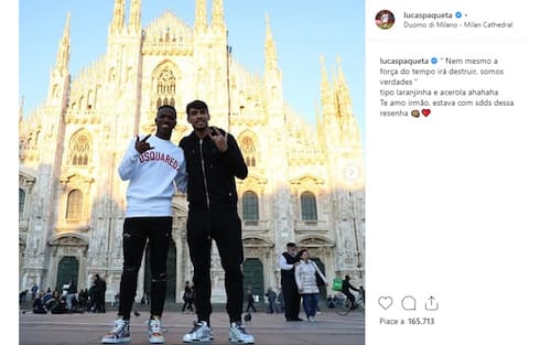 L'attaccante del Real Madrid ha trascorso il pomeriggio a Milano con l'amico Lucas Paquetà, in "libera uscita" dopo la partita del Milan a Torino, persa 2-0 (foto da Instagram)