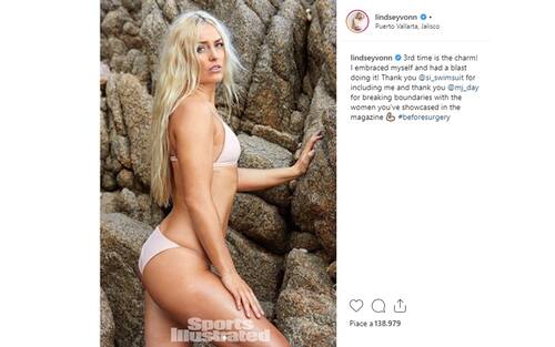 Torna sul calendario di Sports Illustrated Swimsuit la splendida sciatrice Lindsey Vonn (foto da Instagram)