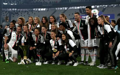 Allo Stadium è stata una festa collettiva, tutti insieme: la Juventus dei record di Chiellini e Barzagli con le splendide ragazze della Juve Women scudettata di Rita Guarino. Con loro anche le bellissime "wags", le compagne dei calciatori: da Georgina a lady Dybala