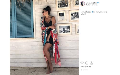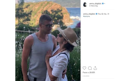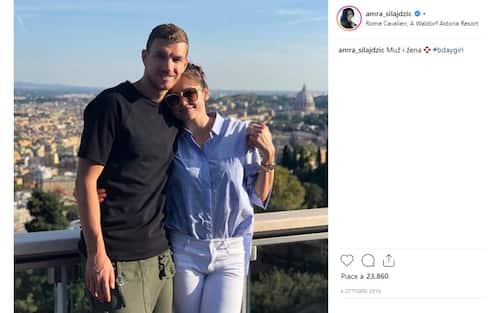 Nonostante il gol, Edin Dzeko esce sconfitto 2-1 a Torino con la sua Bosnia nella partita contro l'Italia, valevole per la qualificazione a Euro 2020. In attesa di sapere dove giocherà la prossima stagione l'attaccante si "consola" con la bellissima moglie Amra, allo Stadium a tifare per lui