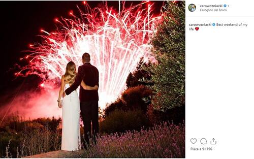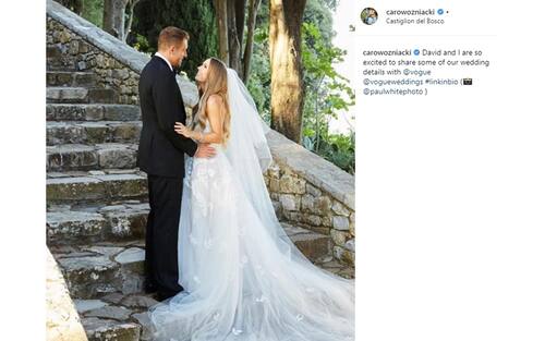La tennista danese Caroline Wozniacki e l'ex campione di Nba David Lee hanno scelto l'Italia per le loro nozze: Castiglion del Bosco, vicino Siena (foto da Instagram)