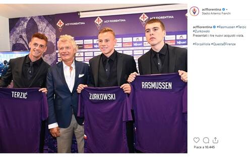 Tre nuovi arrivi alla Fiorentina, presentati in conferenza stampa dal team manager Giancarlo Antognoni. Il serbo Aleksa Terzic, il danese Jacob Rasmussen (entrambi difensori) e il centrocampista polacco Szymon Zurkowski, che non è arrivato solo a Firenze... (foto da Instagram)