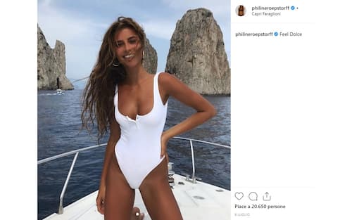 Philine a Capri, in posa con i Faraglioni (foto da Instagram)