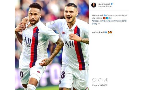 L'esperienza di Maurito con i francesi è cominciata ufficialmente al minuto 63', entrato al posto di Choupo-Motig, quando Psg e Strasburgo erano ancora sullo 0-0 al Parco dei Principi. Poi il gol-capolavoro di Neymar ha regalato la vittoria ai parigini e un bel sorriso a Icardi (foto da Instagram)