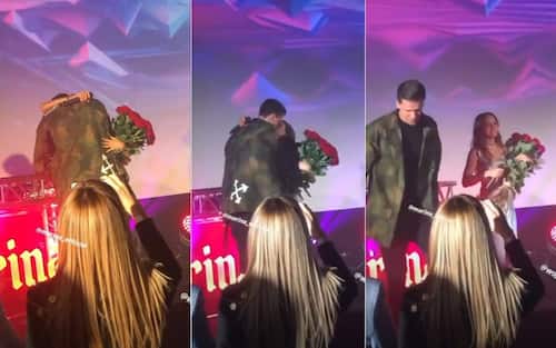Rose rosse e un bacio di Wojciech per Marina alla "première" di Varsavia (foto da Instagram)
