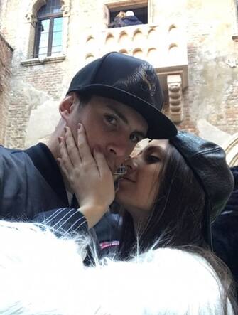 La coppia a Verona, sotto il balcone di Giulietta... (foto da Instagram)