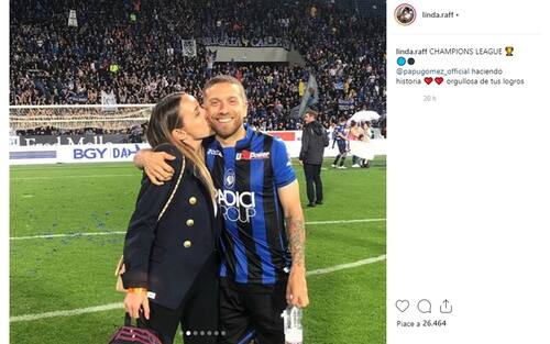 Linda e il Papu a maggio, quando l'Atalanta aveva conquistato il terzo posto e quindi l'accesso ai gironi di Champions. Ma per i bergamaschi il sogno continua... (foto da Instagram)