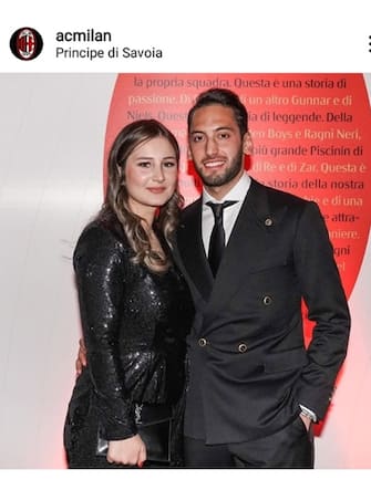 Hakan Calhanoglu e la moglie (foto dal profilo Instagram del Milan)