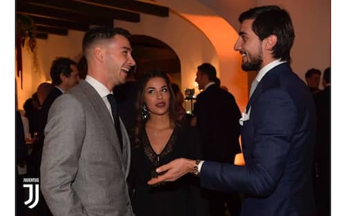Elegantissimi anche Mattia Perin, Mattia De Sciglio e la sua dolce metà Giulia Vesce (foto dal sito ufficiale della Juventus)