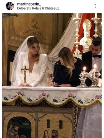 La coppia è convolata a nozze nella chiesa parrocchiale di Santa Maria Assunta, a Erbusco, nel cuore della Franciacorta (foto da Instagram)